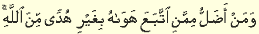 "And who is farther astray than one who follows his own whim without guidance from God?"