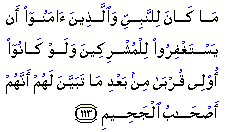 If a person prays to God for someone's pardon it implies, first of all, sympathy and concern for the offender, and a belief that the offence is pardonable. Such an attitude towards an offender who is otherwise faithful is quite all right. But to sympathize with, and love those who have indulged in open rebellion against God and to consider that rebellion pardonable is quite a different matter. Such an attitude is not only wrong in principle but leaves one's loyalty open to doubt. Were we to pray for someone's pardon merely on grounds of kinship, it would mean that we hold our tie of kinship to be more important than our loyalty to God. True faith requires that we should consider God's friends as our friends and God's enemies as our own enemies. It is significant that the verse in question does not say that Muslims should not seek pardon for those who ascribe divinity to others than God. The verse rather characterizes it as something unbecoming of the Prophet (peace be on him) and the believers. It may, however, be clarified that the kind of sympathy which is forbidden for those who have rebelled against God is sympathy which interferes with, and prevents one from fulfilling one's religious obligations. So far as human sympathy is concerned - consideration, compassion and affection - far from being forbidden, it is praiseworthy for a believer to possess such attributes. The worldly obligations that one owes to one's kinsmen - whether they are believers or unbelievers - must be fulfilled. Likewise, those in distress - the needy, the sick, the injured, the orphans - must be helped irrespective of their religious faith. In such matters any discrimination between a believer and an unbeliever is out of the question. Source: |