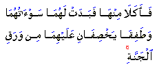 "They they both ate of the tree, and so their private parts became manifest to them, and they began to cover themselves with the leaves of Paradise for their covering."