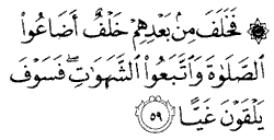 "But the generations who succeeded them neglected their prayers and succumbed to their desires. These shall certainly meet with doom and loss"