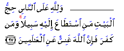 Commentary: The Necessity of Performing Hajj This Ayah establishes the obligation of performing Hajj. There are many Hadiths that mention it as one of the pillars of Islam and this is agreed upon by the Muslims. Pilgrimage is a personal obligation on every individual once in a lifetime, and it becomes due when the conditions of ability are fulfilled, including physical health, ability to travel and safe passage. Imam Ahmed recorded that Abu Huraira (may Allah be pleased with him) said that the Prophet (peace be upon him) once gave a speech in which he said, "O people! Hajj has been enjoined on you, therefore perform Hajj." A man asked "Is it every year, O Allah's Messenger?" The Prophet remined silent until the question was repeated three times, then he said,"Had I said yes, it would have become an obligation and you would not have been able to fullfill it." It is also recorded by Ibn Majah that a man asked, "What is the ability to undertake the journey, O Messenger of Allah?" The Prophet said, "Having provision and a means of transportation." Imam Ahmed recorded that ibn Abbas narrated that the Prophet said, "Whoever intends to perform Hajj, let him rush to perform it." The One who denies the Neccessity of Hajj Becomes a Disbeliever Ibn Abbas, Mujahid and several other commented on this Ayah by saying, "Whoever denies the necessity of Hajj becomes a disbeliever and Allah is far Richer than to need him." Al Hafiz Abu Bakr Al-Ismail recorded that Umar bin Al Khattab said, "Whoever can afford Hajj but did not perform it, there is no difference in his case if he dies a Jew or a Christian." A Call To Unite On Pure Faith Pilgrimage is the Muslims' annual general assembly which is held at the House from which their message was given to them for the first time, and which witnessed the birth of the pure faith of Abraham, their first father, and which was the first House God has set up on earth for His own worship. Pilgrimage is, therefore, an assembly of great significance. Its historical associations centre round the noble concept of faith, which highlights the link between man and his Creator. It is a worthy concept to form the basis for human unity. Hence, it is appropriate that people should assemble every year at the Sacred Place which witnessed the birth of this call to mankind to unite on pure faith. [Adapted from Tafsir ibn Kathir (Abridged) Vol 2, pp 221-224 and "In the Shade of the Quran" by Sayyid Qutb, Vol 2, pp 152-153] |