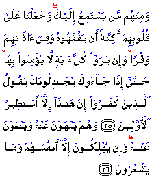 Surah Al-Anam (The Cattle) Here Allah has ascribed to Himself the cause of the defects produced in their faculties of understanding, hearing and seeing, for everything that takes place in the world under the Natural Law does, in fact, take place by the command of Allah because He is the Author of that Law. Therefore the resultant effects of the working of that Law, in fact, take place by the will and order of Allah. The obdurate disbelievers do not understand, do not hear and do not see the Truth, even though they seem to listen to the Message of the Messenger, because their obduracy, their prejudice and their unwillingness have, according to the law of Nature, dulled their faculties. The law is that if one is bent upon obduracy and does not adopt the attitude of a righteous person, all the doors of his heart automatically get locked against every kind of truth that goes against his lusts. When this natural process is described in the human language, it will be said, "The doors of the heart of such and such a person are locked." But God, without Whose Command and Leave nothing whatsoever can happen, will describe the same like this, "We have locked the doors of the heart of such and such a person." This is because a human being will describe the thing, as it seems to happen, whereas Allah states the true nature of the happening. The “Nothing New” Excuse This is the excuse that the foolish people put forward for rejecting the Message. They say, "There is nothing new in the Message towards which the Messenger is inviting us. This is the same old Message that we have been hearing before." According to these foolish people, in order to be true, a Message must also be new because according to them that which is old cannot be true. Whereas the fact is that the Message has always been one and the same and will ever remain so. The Messengers of Allah, who had been coming from the earliest times for the guidance of mankind, have always been communicating the same Message; likewise, the Holy Prophet was also presenting the same old Message. Of course, only those, who being devoid of Divine Light, cannot see the aforesaid eternal reality, might invent something new and by forging some theories present them as truth, saying, "We have a new Message, which has never been given by anyone before us." Double Bad They discourage people from following the truth, believing in Muhammad and obeying the Quran, (and they themselves keep away from him,) They thus combine both evil acts, for they neither benefit themselves, nor let others benefit from the Prophet. Ali bin Abi Talhah said that Ibn Abbas said that the Ayah, (And they prevent others from him) means, they hinder people from believing in Muhammad. Muhammad bin Al-Hanafiyyah said, "The disbelievers of Quraysh used to refrain from meeting Muhammad and they discouraged people from coming to him.'' Source: |