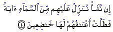 "If We will, We can send down a (compelling) sign on them from heaven, so that they are forced to bow their necks before it (in humility)."