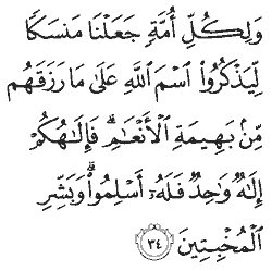 Al-Hajj (The Pilgrimage) Chapter 22: Verse 34