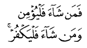 "Let whoever wills - believe, and whoever wills - disbelieve."