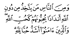 "And [yet], among the people are those who take other than Allah as equals [to Him]. They love them as they [should] love Allah. But those who believe are stronger in love for Allah."